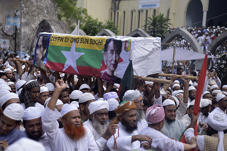 Islamister demonstrerar i Bangladesh huvudstad Dhaka mot Burma och dess politik mot rohingyerna. Foto: Shutterstock