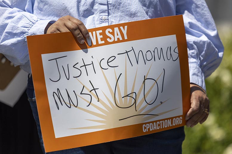 Under våren publicerade den fristående grävande journalistgruppen Pro Publica mycket graverande uppgifter om att Thomas tagit emot resor och gåvor för hundratusentals dollar från den rike affärsmannen Harlan Crow. Thomas hävdade att han pratat med kolleger som sagt att han inte behövde redovisa något av detta om vederbörande inte är inblandad i något mål som HD behandlar. Konservativa röster gick i stället till attack mot Pro Publica och hävdade att det hela är en storm i ett vattenglas.