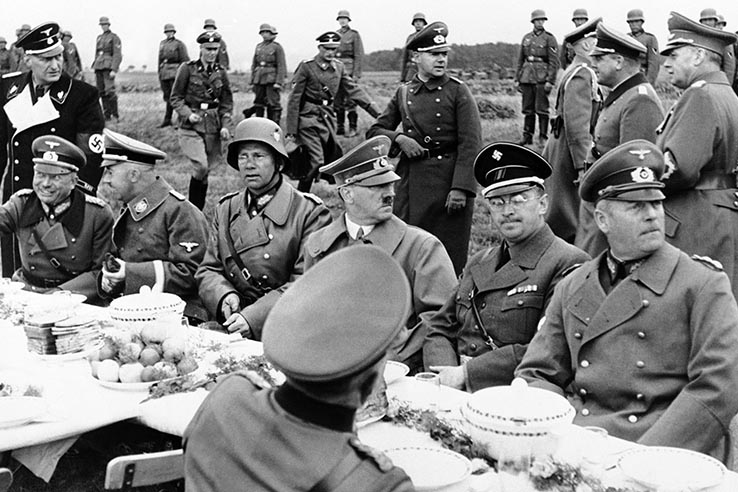 Ordbruk från nazister. Adolf Hitler i mitten och sittande näst längst till vänster chefen för hemliga polisen Gestapo, Heinrich Himmler, som Trump jämfört Joe Bidens styre med. Foto: AP/TT