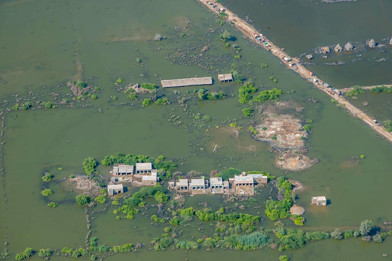 Förödelse i Mirphur Khas i Sindhprovinsen i sydöstra Pakistan efter årets exceptionella monsunregn. Foto: Peter Biro/ECHO